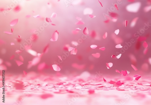 Pink Petal Confetti Falling on Soft Gradient Background Atmosphere