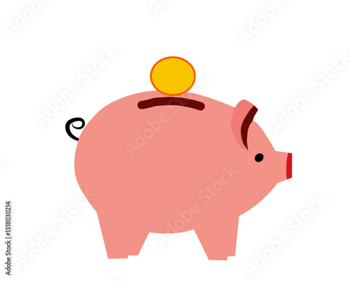 pink piggy bank with a coin. Concept of saving money, financial growth, investment, banking, personal finance, budget planning, and economy