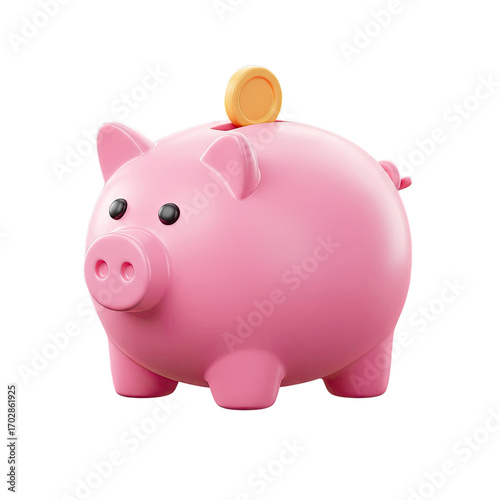 Pink Piggy Bank with a Golden Coin on a Gradient Background: A 3D Rendered Illustration Perfect for Financial Concepts, Savings, and Investment