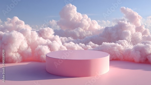 Pink Podium Display in Dreamy Cloudscape Background, Product Showcase, Pastel Aesthetic, Studio Shot, Minimalist Style