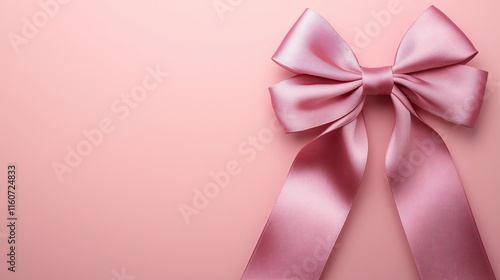 Pink ribbon with a bow on a pink background, with space for text or a message.