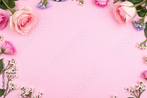 pink roses and babys breath on a pink background