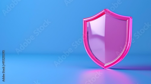 Pink shield on a blue background symbolizing protection, security, safety, and defense. Vibrant colors and abstract concept.