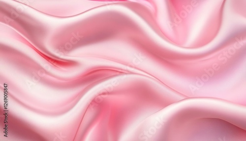 Pink silk background. Wavy pink fabric texture top view. Abstract soft pink backdrop.