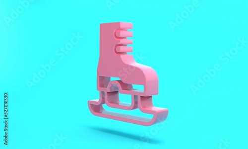 Pink Skates icon isolated on turquoise blue background. Ice skate shoes icon. Sport boots with blades. Minimalism concept. 3D render illustration