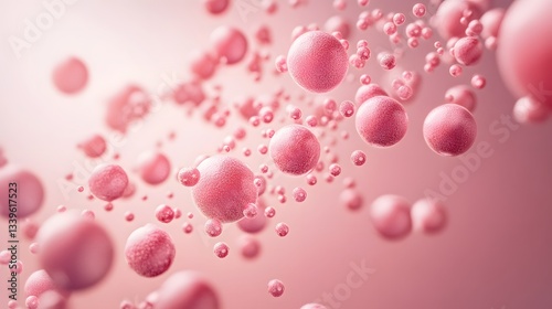 Pink spheres float in a soft pink background