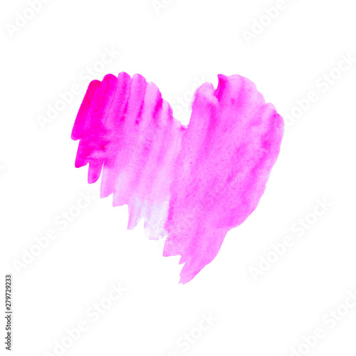 Pink watercolor heart isolated on white background. Gentle, romantic background for design of cards, invitations, etc