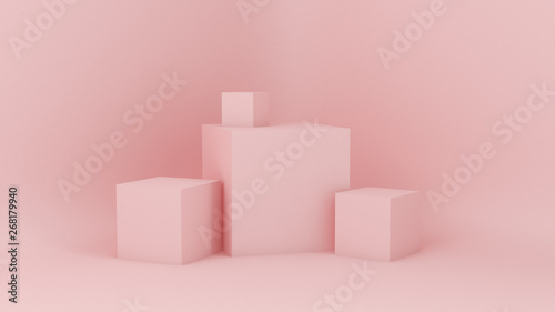 Pink white light background, studio and pedestal. 3d illustration, 3d rendering.
