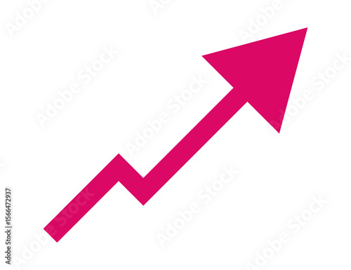 Pink zigzag arrow pointing upwards indicating growth and progress isolated on transparent background