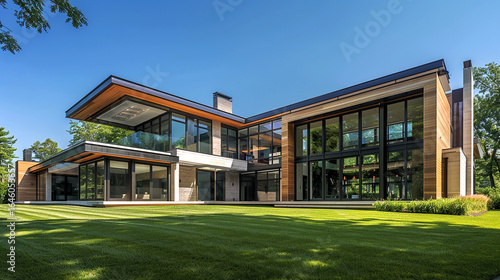 Pinnacle of contemporary residential architecture. A design with an emphasis on clean lines and natural light. An expansive green lawn for serene outdoor living.