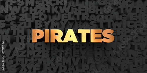 Pirates - Gold text on black background - 3D rendered royalty free stock picture. This image can be used for an online website banner ad or a print postcard.