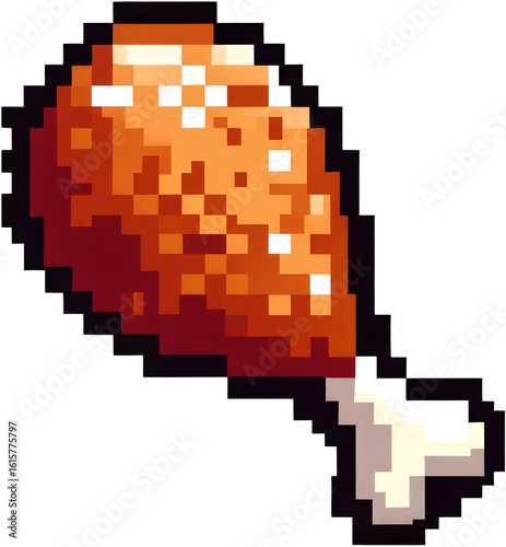 Pixel Art Fried Chicken Drumstick Set 8-bit Food Icons, PNG Pixelated international fast food icons, element set on transparent background. Generative ai