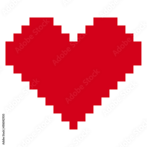 pixel art heart, rendered in a retro 8-bit style. The design captures the nostalgic essence of classic video games, making it perfect for use in digital projects The vibrant and minimalist style adds