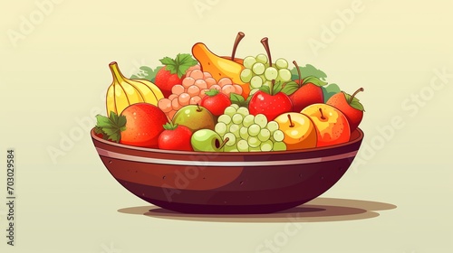 Pixel Art Illustration of Bowl of Fruit, Front View, Cute and Colorful, Cartoon Style, Banana, Pineapple, Strawberry, Isolated, Simple background