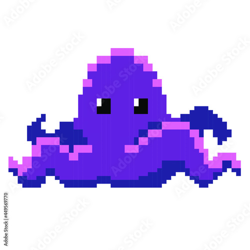 Pixel art sea octopus. Cute vector illustration.