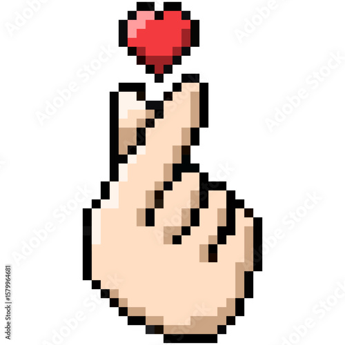 Pixel finger heart vector, a cute 8-bit gesture of love and affection. Perfect for gaming, social media, or nostalgic pop culture designs.
