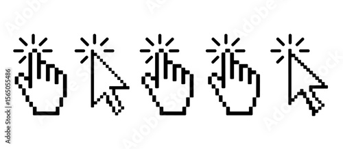 Pixel hand cursor clicking, pointing with finger, computer mouse pointer
