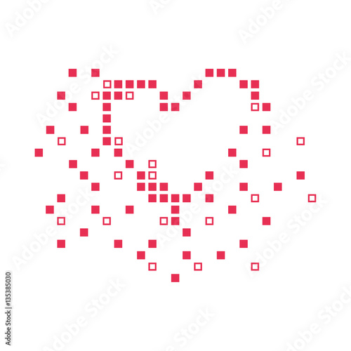 Pixel Heart Collapsing. Flat vector design.