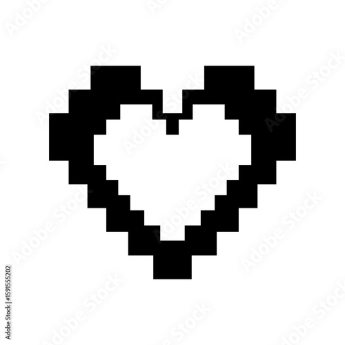 Pixel heart icon in retro 8-bit style with vector design for love and technology themes
