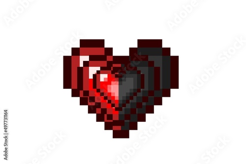 pixel heart in red and black isolated on white