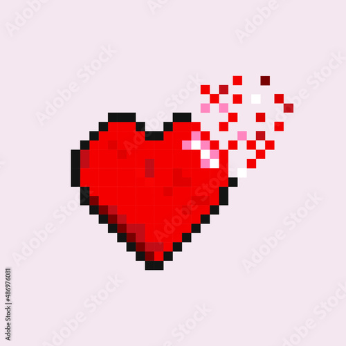 Pixel Heart Vector of Red Heart Dispersion Effect on White Background, Pixel Art