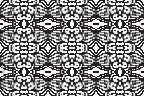 Pixel monochrome seamless. pixel patterns in Aztec geometric tribal style. Vector illustration. Ethnic abstract ikat art. Aztec ornament print. geometric