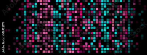 Pixelated Design: Pink and Turquoise Pixels on Dark Background