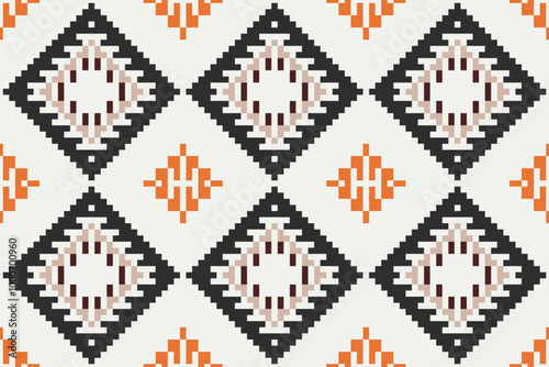Pixelated Modern Abstract Geometric Patternfolk Embroidery, Aztec Geometric Ornament Print. Design for Carpet, Wallpaper, Clothing, Wrapping, Fabric