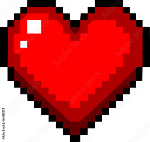 Pixelated red heart graphic, a digital representation of love and affection, isolated on white background.
