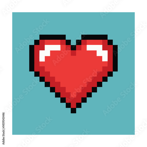 Pixelated red heart icon on a turquoise background symbolizing love and affection for digital designs