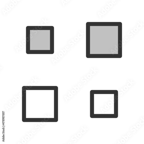 Pixel-perfect linear icon of stop button built on two base grids of 32 x 32 and 24 x 24 pixels. The initial base line weight is 2 pixels. In two-color and one-color versions. Editable strokes
