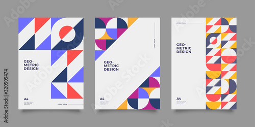Placard templates set with Geometric shapes, Retro bauhaus swiss style flat and line design elements. Retro art for covers, banners, flyers and posters. Eps 10 vector illustrations