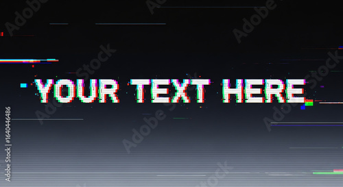 Placeholder text 'Your Text Here' with a digital glitch and chromatic aberration effect.