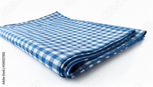 placemat fabric cloth or arrangement of gingham patterned fabrics in blue tones isolate on a white background food menu design textile