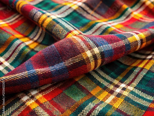 Plaid Fabric Background, Detailed Texture, Traditional Pattern, Subtle Colors, Photography