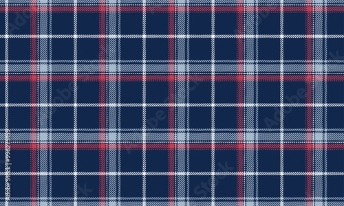 Plaid fabric pattern, blue, white, pink, prominent elegant checkered lines, seamless for textiles, and for designing clothes, skirts or decorative fabrics. Vector illustration.