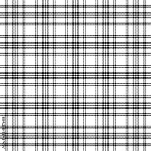Plaid with twill weave repeat pattern.Gingham seamless pattern in black and white.Checkered tartan Geometric graphic vector illustration background design for fabric and prints