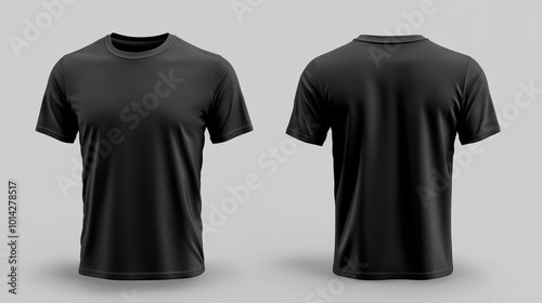 plain black t-shirt mockup design. front and rear view. isolated on transparent background. generative ai