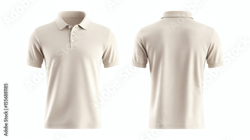 Plain cream polo shirt 3D mockup showcasing front and back views for apparel design presentation on white background