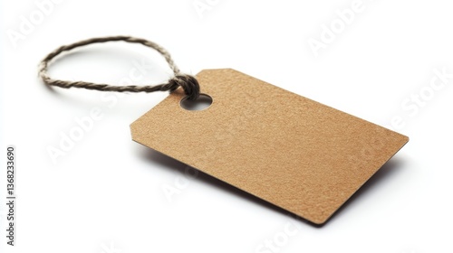 plain kraft paper tag with string isolated on white background for branding packaging or product labeling