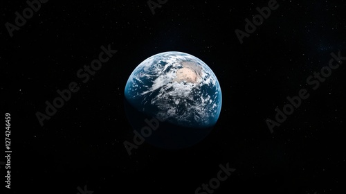 Planet earth viewed from space showing africa and clouds against black background with copy space. Global environment concept. Science and astronomy wallpaper