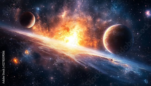 Planetary explosion, space, cosmic event, nebula background, science fiction