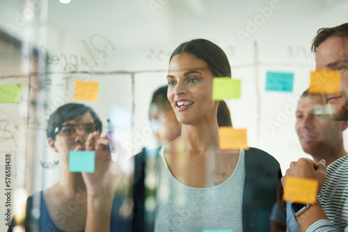 Planning is the first step. Cropped shot of a group of young designers planning on a glass board.
