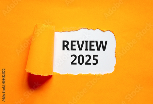 Planning review 2025 new year symbol. Concept words Review 2025 on beautiful white paper. Beautiful orange paper background. Business review 2025 new year concept. Copy space.