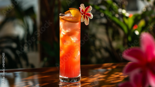 Planters Punch cocktail in glass, refreshing colorful alcohol drink