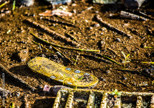 Plastic scrap in the water, rural canal Chiangmai Thailand
