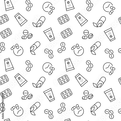 Plate Tablets, Homeopathy, Taking the Medication Seamless Pattern for Printing and Wrapping