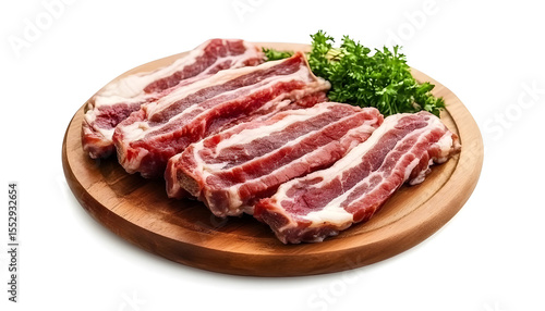 plate with beef with bacon in mushroom sauce isolated on transparent background