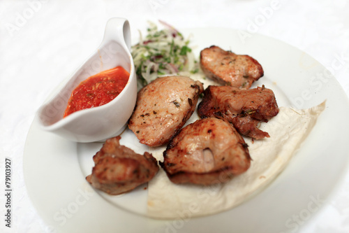 Plate with pieces of kebab