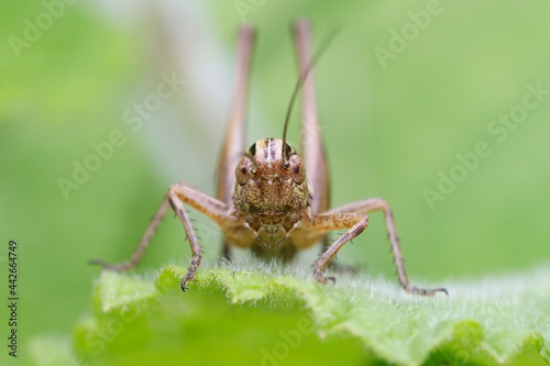 Platycleis nymph in the vegetation of a prairie